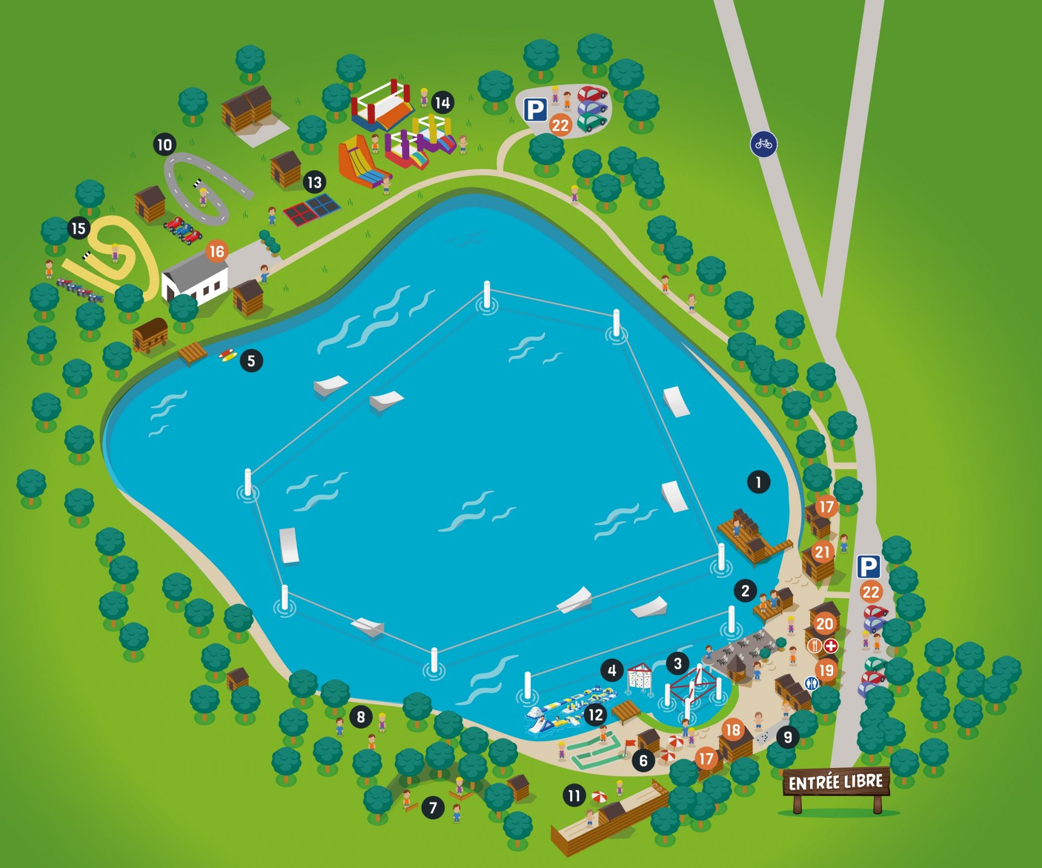 - 1h d'accro sur l'eau, tour de bouée, 30min de paddle, 1 partie de mini golf, 1h de jeux pour enfants