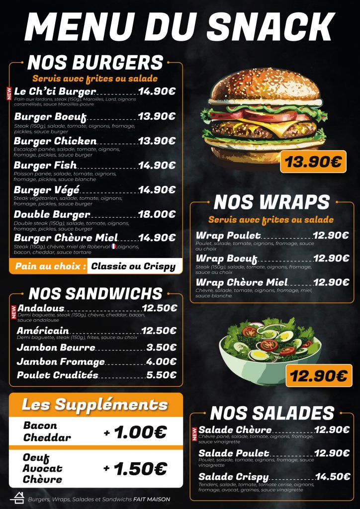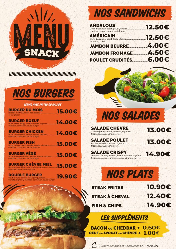 Double steak (120g), salade, tomates, oignons, double fromage, pickles, sauce burger