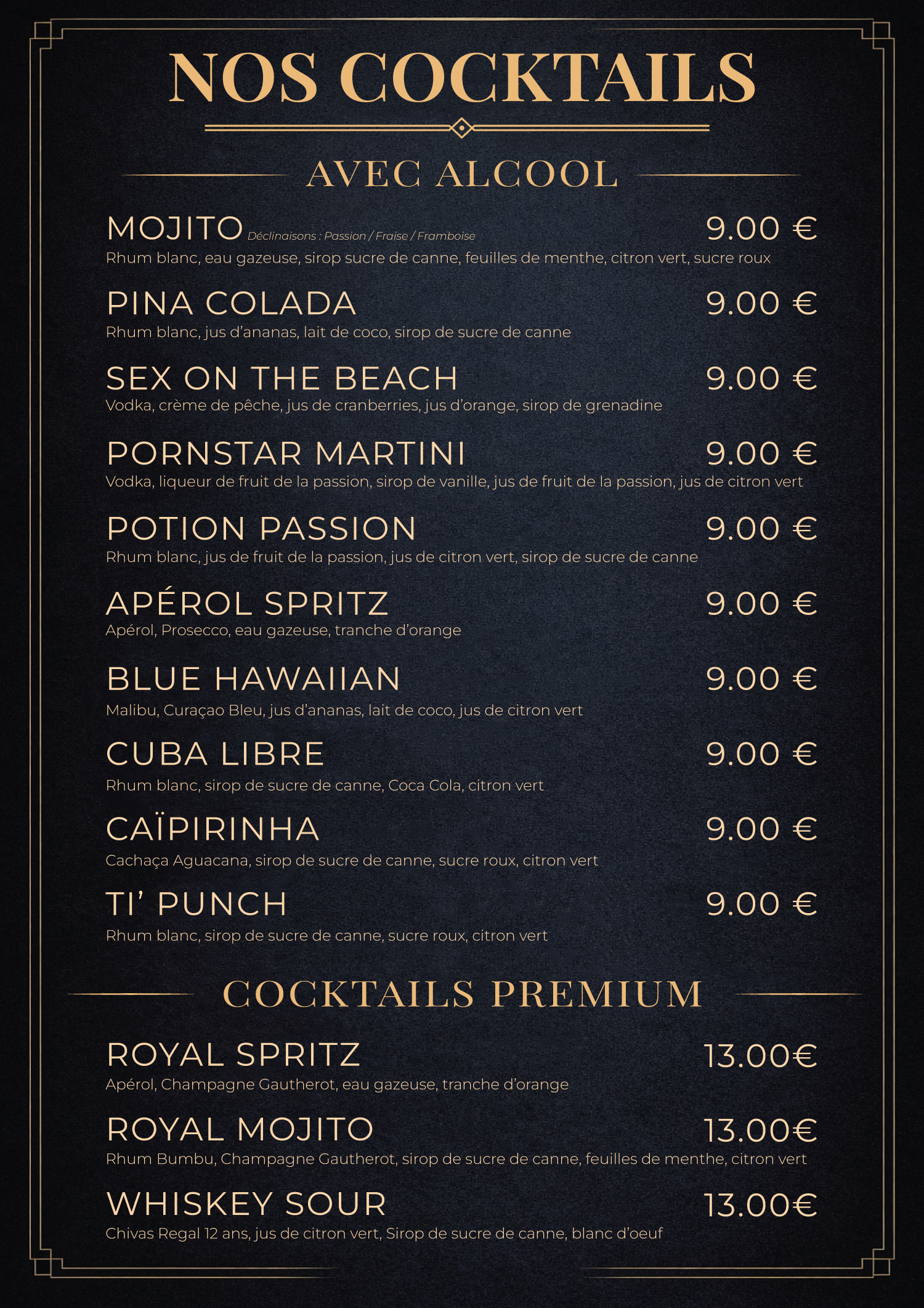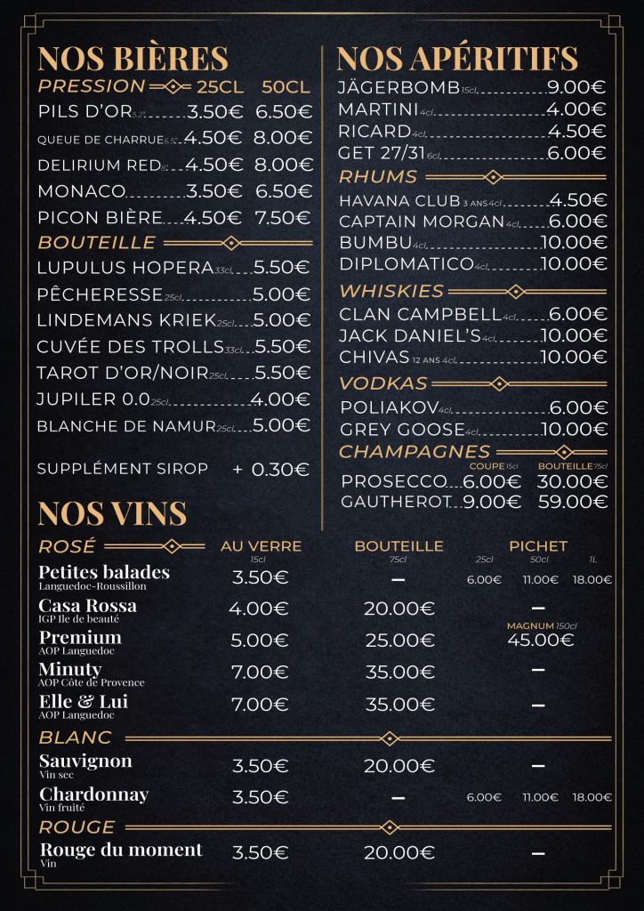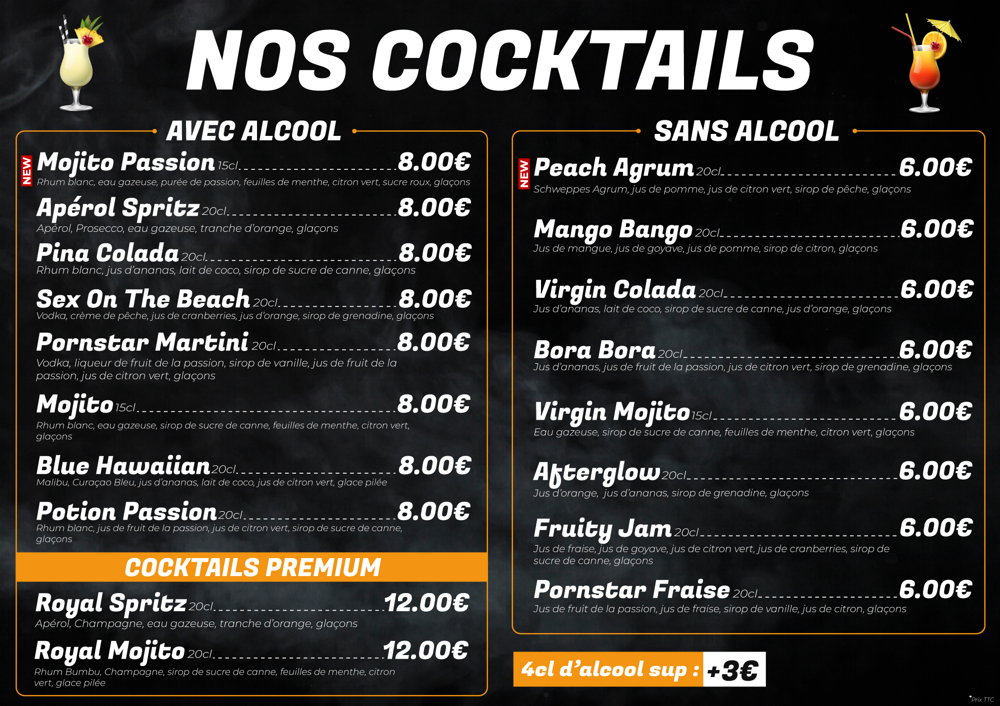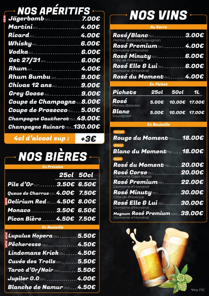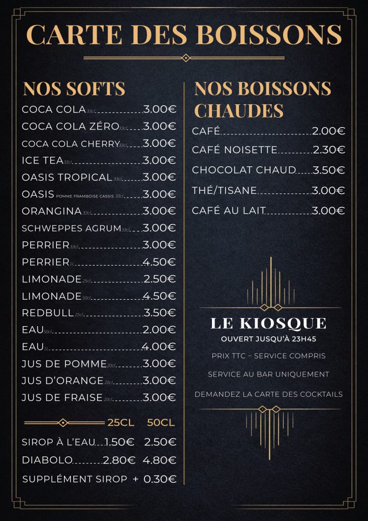 Coca Cola, Coca Cola Zero, Coca Cola Cherry, Ice Tea, Oasis Tropical, Orangina, Fanta, Schweppes Agrum, Schweppes Tonic, Perrier, Minute Maid